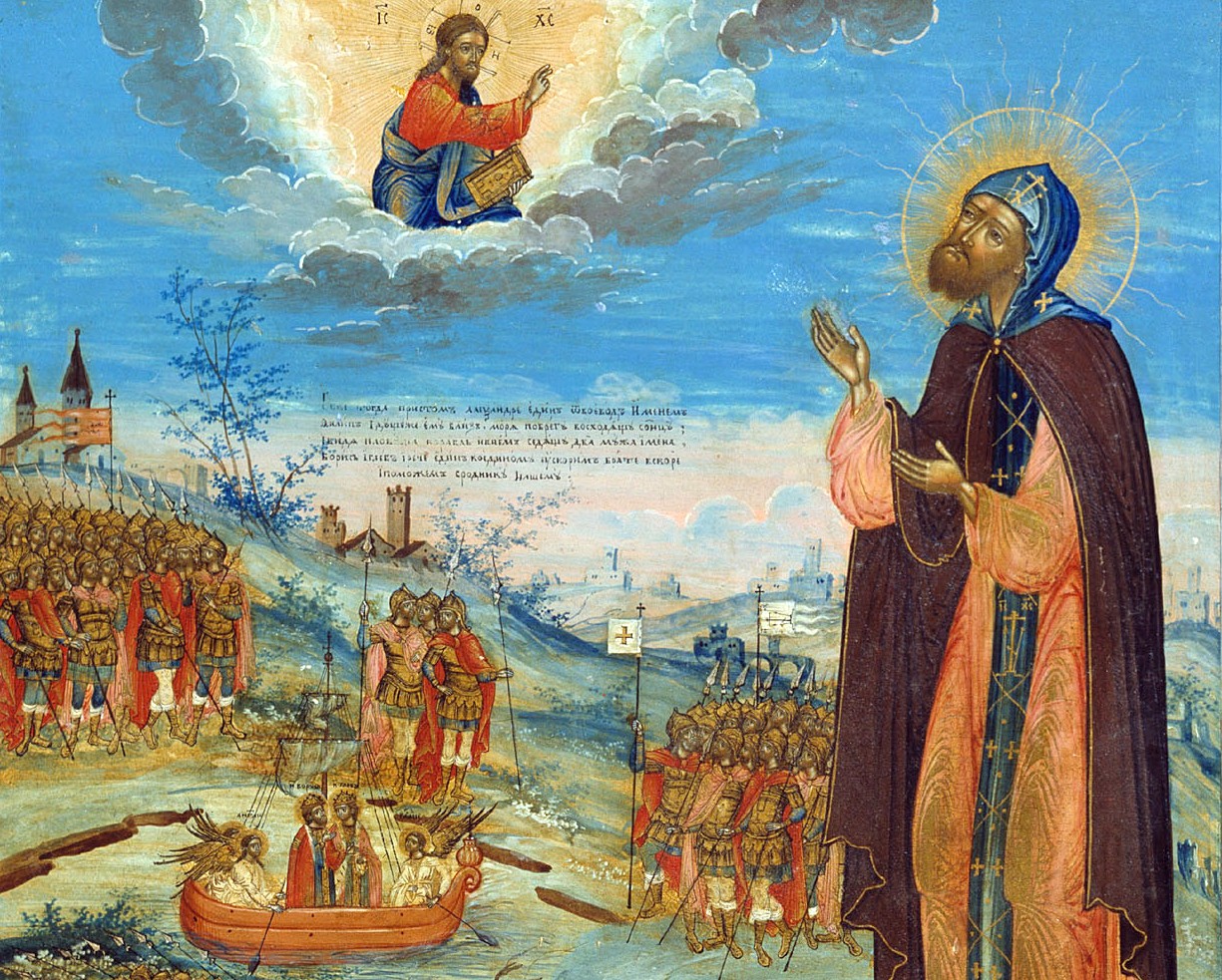 В текстах богослужения праздника великий князь, благотворитель вдовам и сиротам, удостоился звания «многосветлой звезды от востока»[1]. В силу светлости жития, он стал «телесным сосудом Cвятого Духа» [2]. Он не проводил время в потехах на роскошных пиршествах, как его тезоименитый Македонский правитель. Мы ничего не знаем о его имуществе, оставленном детям после смерти. Из жития мы видим, что на смертном одре Александр Невский принял схиму, вверяя тем самым Богу свою жизнь, свои последние силы и свое дыхание. За благочестие кроткого князя-политика и военачальника Господь сделал его источником чудес и придал его имени великую славу.