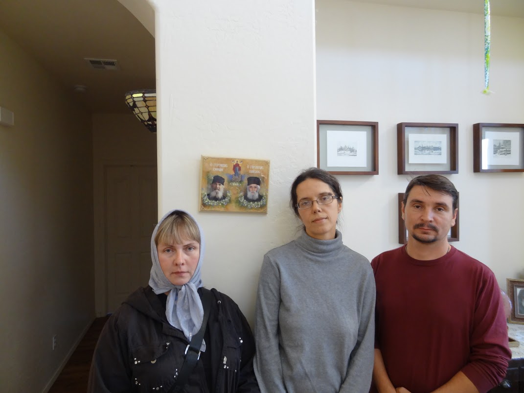 Ольга: Был еще второй знак, который отец Павел подал нам, что не без его молитвы мы тут находимся. Приехали в монастырь несколько паломников из России. И одна русская паломница заходит в наш дом, смотрит на портреты старцев и спрашивает: «А портрет отца Павла-то у вас откуда здесь, в Аризоне, взялся?» Оказывается, она к нему ездила… И считает его своим духовным отцом, который очень сильно помог ей найти правильный путь в жизни. Я, говорит, у него брала благословение учиться дальше после института. Но он ответил: «Нет. Не нужно. У тебя будет свой дом, а вокруг будут ходить и мычать коровы». И, вы знаете, предсказание полностью сбылось! Она живет в своем доме, а вокруг ходят коровы! Правда, это не ее коровы…