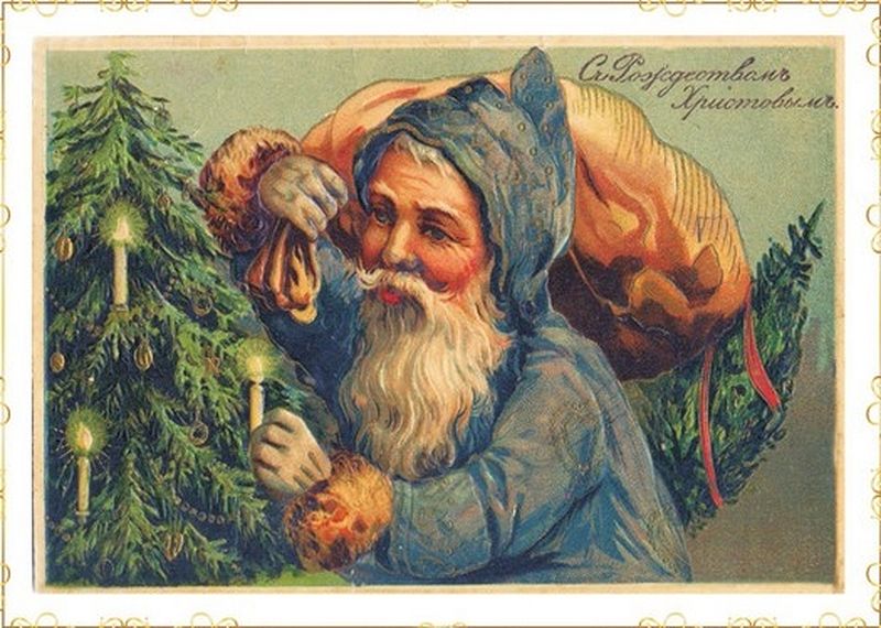 За образцы были взяты не "Санта Клаусы", а дореволюционные открытки из фондов Крымского этнографического музея и детские рисунки с выставки «От Святителя Николая к Крещению Господню», которая является совместным проектом епархии и музея, особо отмечают в епархии.