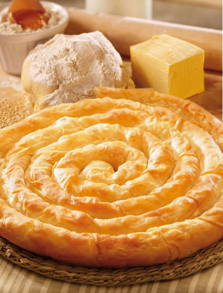 Баница — это знаменитый пирог, которые пекут на рождество в Болгарии. Он бывает с самыми разными начинками — с мясом, со шпинатом, фруктами. Но самая популярная, пожалуй, брынза. Печется баница из вытяжного теста, и приготовить его не сложно. Но если времени нет, можно взять готовое бездрожжевое слоеное — получится отлично.