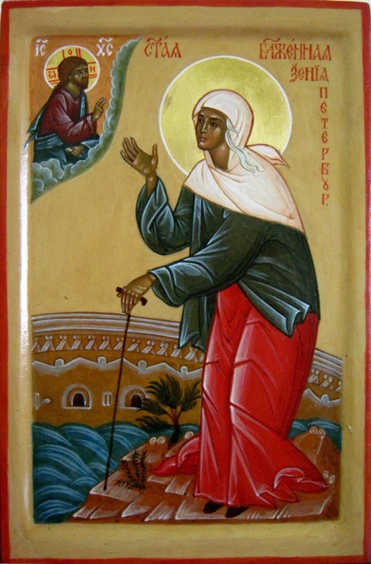 To this end, she returned to St. Petersburg, clothed herself in one of her late husband’s old uniforms and linens and thereafter refused to respond the name of Xenia Grigorievna, answering instead only to the name of her late husband, Andrei Feodorovich. It was as if she, in her deep devotion to her husband, had hoped in some way to take upon herself the burden of his unrepented sins and of his unfortunate demise without the Holy Mysteries. Sorrowing for her own sins and for his, she left her home and began her long pilgrimage of wandering through the streets of the poorer district of St. Petersburg known as the Petersburg Borough (Peterburgskaya Storona). She was most often to be found in the vicinity of the parish of Saint Matthias where the poorest people lived in shabby huts.