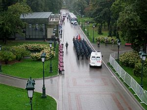 While we were visiting the vicinity of the Cathedral, we saw a squadron of soldiers marching. While we were visiting the vicinity of the Cathedral, we saw a squadron of soldiers marching.