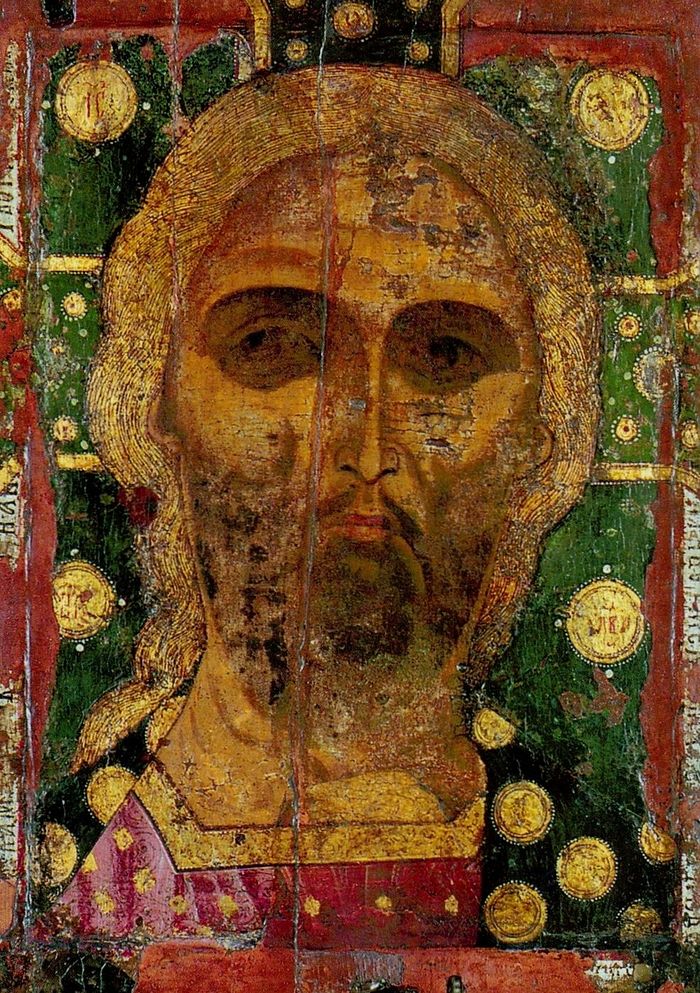 The North western gate features painted portraits of ancient philosophers, poets, playwrights and historians such as Plato, Aristotle, Plutarch and Homer with a wreath on his head. Virgil and Ptolemy are dressed in Old Russian garments. All these great men were considered the predecessors of Christian wise men.[2]  Old Russian icons include the Nativity of Christ, 15th century; Holy Virgin Eleusa, end of 14th century; and other masterpieces.