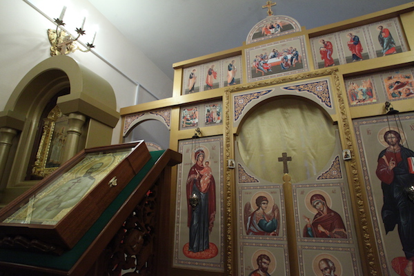 Больничный храм небольшой, он находится в одном из кабинетов на втором этаже главного корпуса.