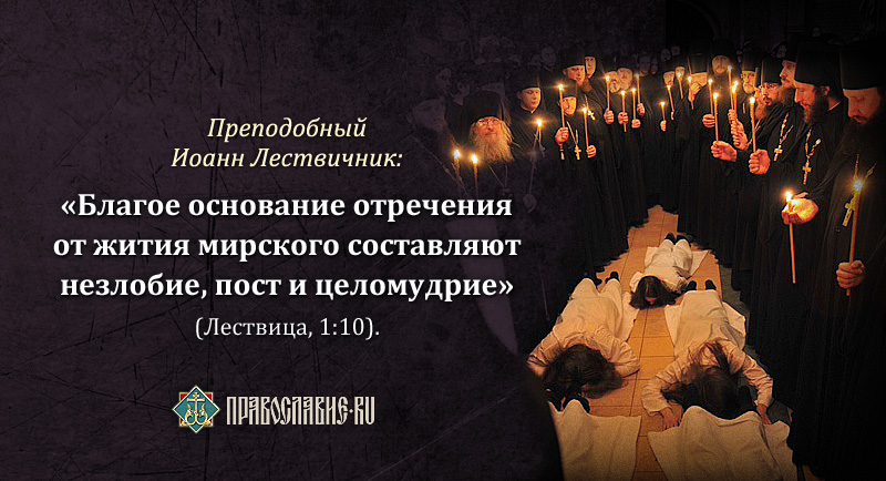10. Благое основание отречения от жития мирского составляют незлобие, пост и целомудрие.