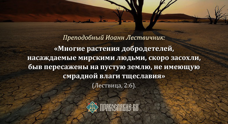 6. Видел я весьма многие и различные растения добродетелей, насаждаемые мирскими людьми и как бы от подземного стока нечистоты напаяемые тщеславием, окапываемые самохвальством и утучняемые навозом похвал. Но они скоро засохли, когда были пересажены на землю пустую, не доступную для мирских людей и не имеющую смрадной влаги тщеславия.