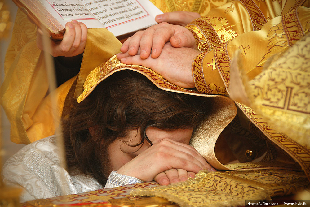 Совершается рукоположение всегда на Божественной Литургии, и под руками архиерея коленопреклоненный ставленник, диакон в нашем случае, преклоняет свою главу к Престолу, а весь храм молится, чтобы сошла на него благодать Святого Духа.