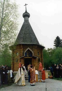 Восемнадцать православных священников и один диакон, в большинстве — сербы, участвовали в этой незабываемой службе. Подобно расслабленному, которого через отверстие в крыше опустили перед ногами Христа Спасителя, греческий архимандрит Мелетий был принесен в часовню на носилках, где он пробыл лежащим во время всего Богослужения.