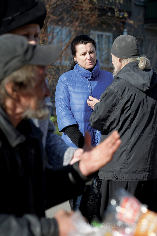 Но откровенно неблагополучных людей здесь немного, большинство все-таки обычные пенсионеры. Сюда они приходят не в последнюю очередь за медицинским осмотром, например, чтобы проверить уровень сахара в крови. В поликлинике нужно отстоять очередь, а не хочешь очереди — иди в платную клинику. Здесь же, на акции «Учимся милосердию», и бесплатно, и очередей нет.