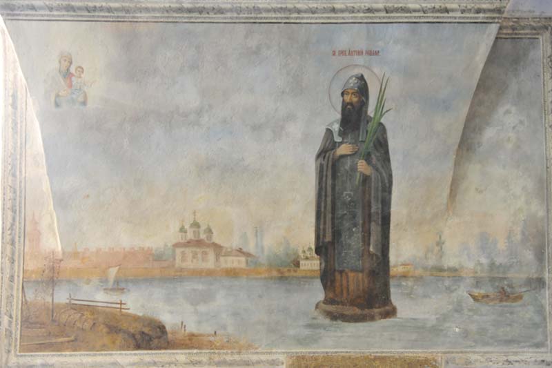 Собор, который итальянский монах построил, сохранился до наших дней, как и камень (точнее, его небольшая часть), на котором Антоний прибыл в Волховское — его можно увидеть в притворе храма под изображением святителя Никиты Новгородского.
