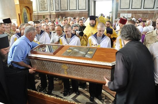 Раку с мощами святого воина пронесли через 10 городов России. Крестный ход, по благословению Патриарха Московского и Всея Руси Кирилла начался 6 августа в Мордовии, в Санаксарском монастыре и приурочен к 15-летию канонизации флотоводца и грядущему празднованию 320-летия со дня создания Петром I регулярного Российского флота.