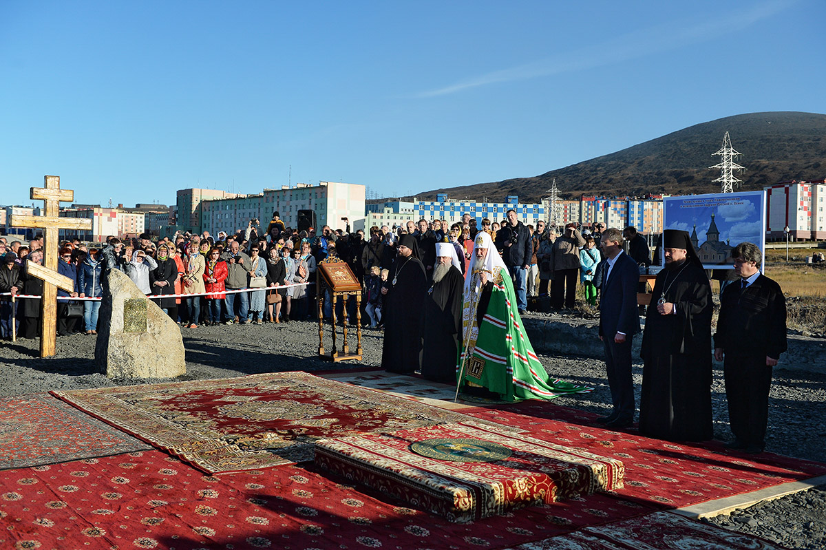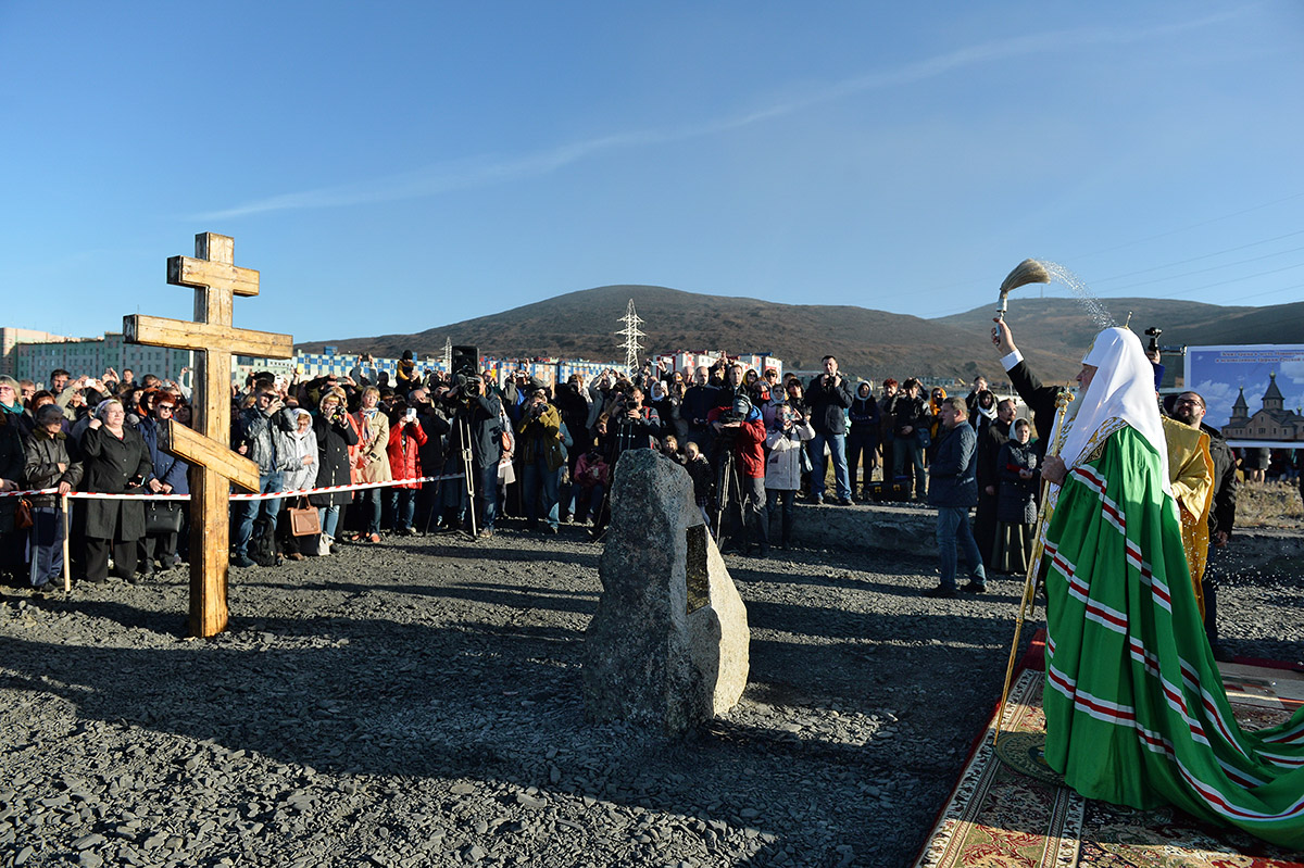 6 сентября 2016 года Святейший Патриарх Московский и всея Руси Кирилл совершил чин освящения закладного камня в основание храма святых Новомучеников и исповедников Церкви Русской в городе Певек на Чукотке.