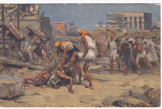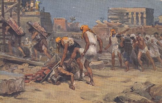 «И потому Египтяне с жестокостью принуждали сынов Израилевых к работам и делали жизнь их горькою от тяжкой работы над глиною и кирпичами и от всякой работы полевой, от всякой работы, к которой принуждали их с жестокостью» (Исх. 1: 13–14).