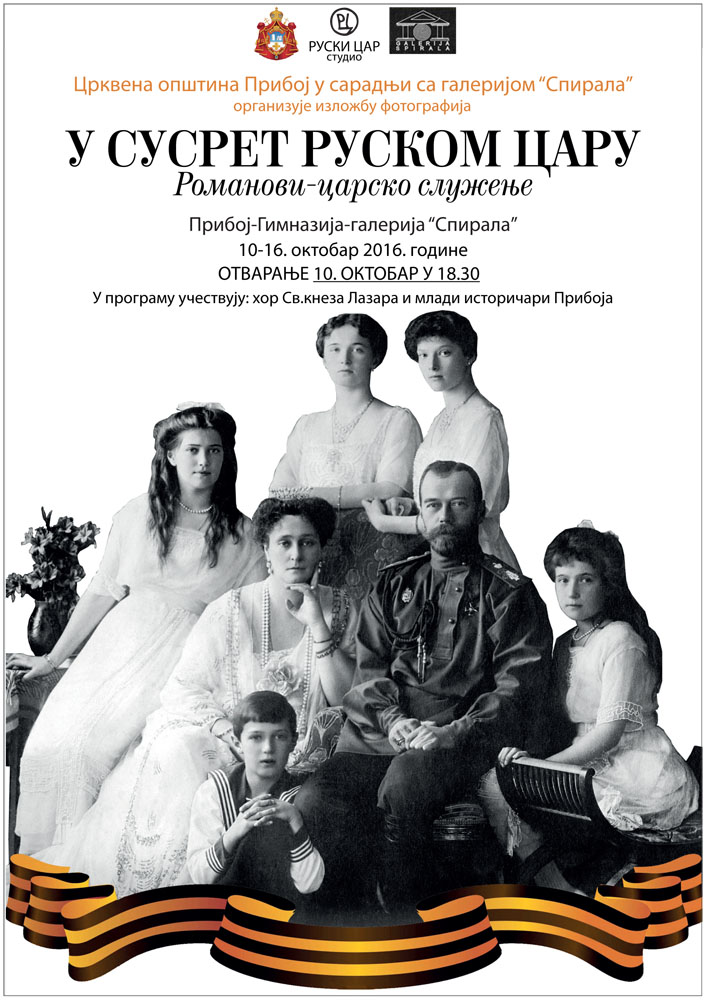У понедељак, 10. октобра у 18.30, у галерији „Спирала“ у Прибоју биће отворена изложба фотографија „У сусрет Руском Цару“. Изложбу чине фотографије из породичних албума царске династије Романов.