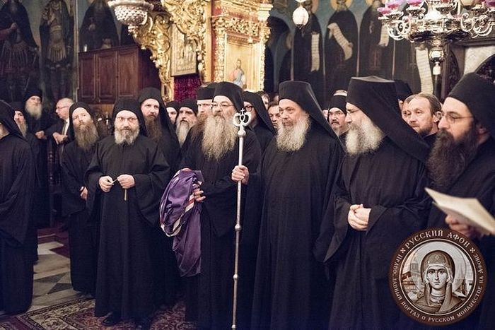 В составе кинотской Эпитропии в Русский монастырь прибыли антипросоп Великой Лавры иеромонах Никодим, антипросоп монастыря Ставроникита иеромонах Филимон, антипросоп монастыря Кутлумуш иеромонах Филофей, антипросоп монастыря Ксиропотам о. Павел, антипросоп монастыря Ксенофонт иеромонах Григорий и архиграмматеос (старший секретарь) Священного Кинота иеромонах Феофил. Также для участия в торжественной церемонии прибыли игумен Сербского монастыря Хиландар Мефодий и представители других обителей Афона: иеромонах Симеон Дионисиатский, иеромонах Георгий Ватопедский, иеромонах Димитрий Григориатский, иеромонах Тихон Симонопетрский, иеромонах Гавриил из скита Белозерка.