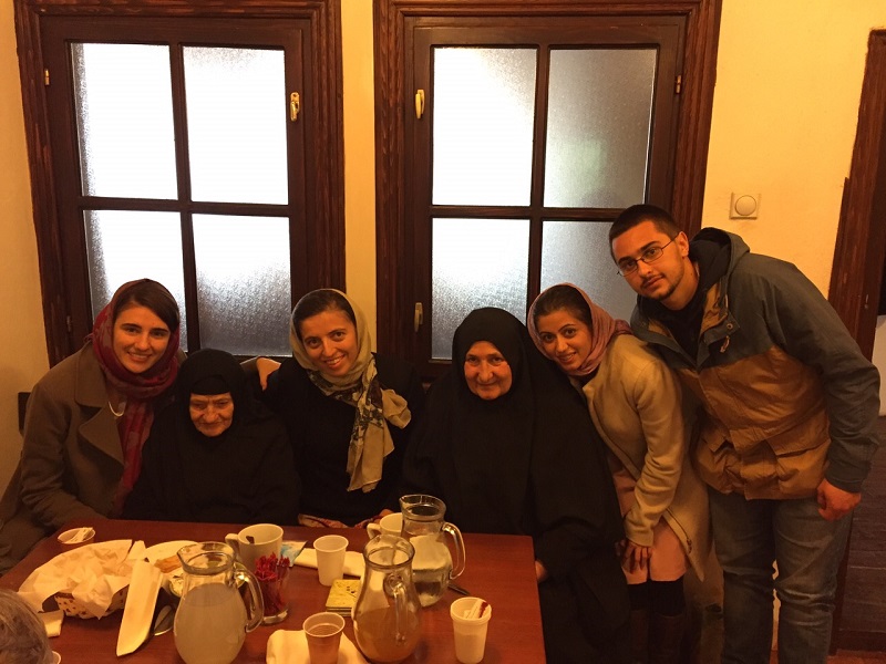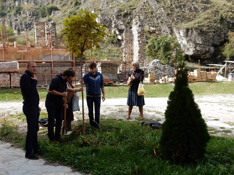-Отац Михаило, стуб храма у обнови, поред свих недаћа које га ломе, искушења и забрана обнове цркве, дочекао нас је раширених руку, а тако и гостио -прича нам Јелена Јововић. Замислите каква је љубав нашег оца Михаила кад је у знак нашег дружења дошао на идеју да засадимо неколико младих стабала које ће нас увек подсећати на оно што јесмо, Косово као стабло, а ми гране, разгранале по свету, али ипак зна нам се корен, Метохија! И засадили смо, залили водом из Бистрице, која је гласно жуборила, као да нас је молила да останемо.