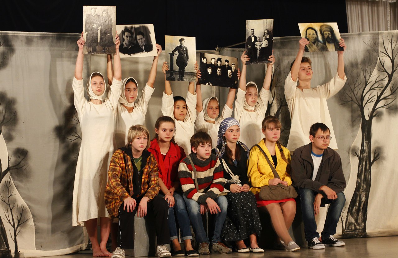 Иногда приходилось что-то им объяснять. Они не понимали, почему, например, в школьном альбоме Боевой Славы есть портрет героя, а в его собственной семье – у внуков, правнуков – нет? Зачем тверской купец подарил колокол церкви не в своей деревне, а совсем в другом регионе? Мы просто обсуждали: могло ли такое быть? почему так было? Старались вместе разобраться. Я рассказывала им истории, которые легли в основу той или иной реплики или сцены.