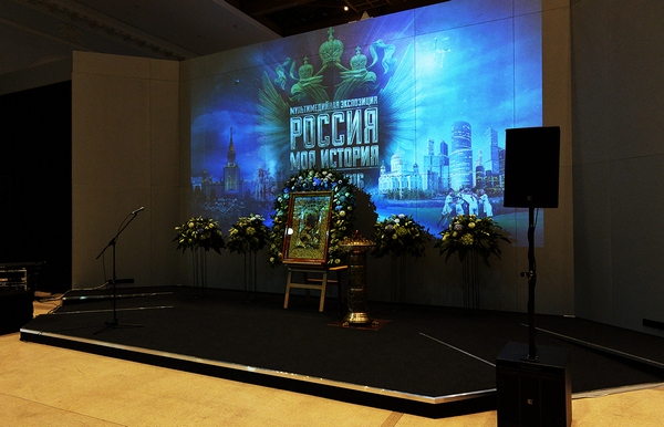 На открытии выставки присутствовали Президент РФ В. Путин, председатель Правительства РФ Д. Медведев, Патриарх Кирилл, мэр Москвы С. Собянин. Пояснения давал председатель Патриаршего совета по культуре епископ Егорьевский Тихон. Фото пресс-службы Московской Патриархии