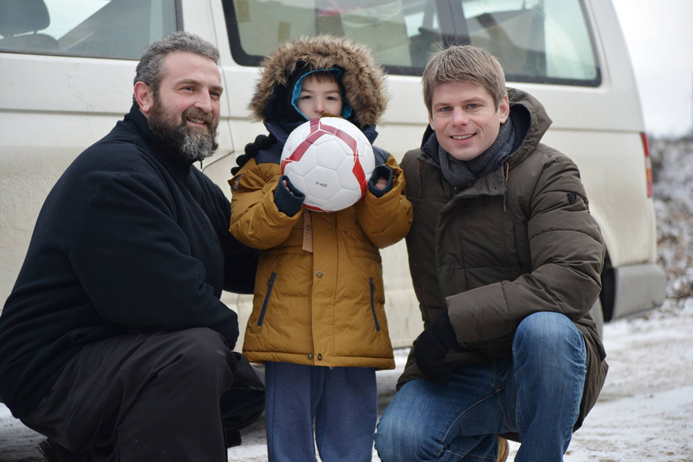 Бог вам помогао, и боље вас нашао! Да, ово је дванаеста година за редом да смо ту уз Србе на Косову и Метохији за време Божићних и новогодишњих празника. Ето, од 2004. године трудимо се да будемо уз овај храбар и племенит народ који живи усамљен, и до којег је ретко коме стало. Ми се трудимо да пружимо поред материјалне помоћи и мало моралне подршке што је свакако потребно. Поред мене је десеторо волонтера из Француске који сваке године долазе овде, који помажу током целе године рад наше организације и без њих ни један конвој, ни једну помоћ не бисмо успели да донесемо на Косово свих ових година.