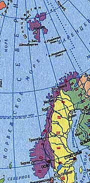 | | Карта Норвегии | Отношения России и Норвегии на протяжении веков носили мирный и добрососедский характер. Между нашими странами никогда не было прямых вооруженных конфликтов, а все возникающие недоразумения и спорные вопросы разрешались полюбовно. Однако в последние годы наши отношения все чаще омрачаются инцидентами, связанными с деятельностью обеих стран на архипелаге Шпицберген и в прилегающей морской зоне. Последним примером стал арест российских рыболовных траулеров. Де-юре архипелаг с 1920 года принадлежит Норвегии, но по условиям договора всем подписавшим его странам, в том числе и России, гарантированы равные права в отношении коммерческой деятельности на островах. Тем не менее, Норвегия ревностно охраняет свой суверенитет и болезненно воспринимает любые российские действия и инициативы, которые могут быть истолкованы как нарушение суверенных прав этого государства.Болезненность русско-норвежских «шпицбергенских» конфликтов имеет глубокие исторические и географические корни. Дело в том, что обе страны имели право претендовать на суверенитет над архипелагом. То, что окончательное решение вопроса было принято все-таки в пользу Норвегии, во многом объясняется тем, что в силу сложившихся обстоятельств (революция 1917 года и сепаратный мирный договор с Германией 1918 года) Россию фактически вывели из игры. В этой статье мы не будем касаться вопроса о том, кто был прав, а кто – виноват, а представим читателю некоторые факты из истории русской и норвежской деятельности по освоению и изучению архипелага.  | | Крест-мощевик. ХVI в. Музей «Помор», поселок Баренцбург, Шпицберген, Норвегия | До первой мировой войны архипелаг был «ничьей землей», «terra nullius». Официально считается, что архипелаг был открыт в 1596 году экспедицией голландца Виллема Баренца, ему же мы обязаны и названием «Шпицберген», что в переводе означает «острые скалы». Однако архипелаг имеет еще два имени. Норвежцы называют его «Свальбардом», «холодным краем». Это название впервые упоминается в исландских хрониках 1194 года, и норвежские ученые конца XIX века посчитали, что речь идет именно о Шпицбергене. Предположение породило гипотезу о том, что первооткрывателями архипелага были викинги, и буквально до недавних пор это мнение, не подтвержденное никакими другими источниками, имело широкое распространение в норвежской исторической и популярной литературе. Это же название официально закрепилось за архипелагом после передачи его Норвегии. Русские называли Шпицберген «Грумантом» (искажение названия «Гренландия», за которую первоначально принимали архипелаг). Современные российские ученые под руководством В.Ф. Старкова с помощью дендрохронологического метода доказали, что русские поморы начали хозяйственное освоение островов во второй половине XVI в. – то есть еще до открытия архипелага Баренцем. | | Домик полярного исследователя Русанова | Русские безраздельно господствовали на Шпицбергене до первой четверти XIX в. Приезжавшие на острова артели оставались на зимовку и для этой цели строили себе добротные деревянные жилища и даже бани. По данным норвежского геолога Адольфа Хуля (речь о нем пойдет далее) только в западной и северной части главного острова в начале XX века насчитывалось более 100 русских построек. Кроме того, поморы оставили на архипелаге боль