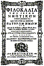 Добротолюбие священных трезвомудрцев, собранное из святых и богоносных отцов наших, в котором, через деятельную и созерцательную нравственную философию, ум очищается, просвещается и совершенствуется. Исправленное и теперь первым изданием изданное на средства честнейшего и боголюбивейшего господина Иоанна Маврокордата, на общую пользу православным. В Венеции, 1782. У Антония Вортоли. Con Licenza de Superiori, e Privilegio