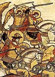 Воинство Божие, пришедшее на помощь Александру. Миниатюра Лицевого летописного свода XVI в.