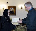 [Интернет-журнал / Культура] С 19 января по 18 февраля 2013 г. в здании Торгово-промышленной палаты Российской Федерации будет проходить персональная выставка акварелей Алии Нуракишевой. Вход свободный. Представляем избранные работы художницы.  [Интернет-журнал / Общество] Антон Леонтьев Непреклонность и глухота власти по продвижению такого гнусного закона серьезно задели веру христиан во Франции и честь французов, что опасно.  [Интернет-журнал / Общество] Протоиерей Андрей Ткачев Помните кульминационный крик боярина в комедии про Ивана Васильевича: «Войско взбунтовалось! Говорят, царь ненастоящий!»? Думаю, что это – красная нить всей русской истории, выведенная на сцену под хи-хи.  [Интернет-журнал / Семья] Маргарита Коваленко В семье нельзя супругам друг друга воспитывать, нужно действовать любовью, везде соломку подкладывать и очень внимательно друг за другом следить, чтобы предупредить надрыв. Воспитывает Господь, а мы призваны помогать – жертвовать собой.  [Интернет-журнал / Культура] В Сретенском монастыре побывал директор Библиотеки Конгресса США доктор Джеймс Х. Биллингтон. Мы расспросили его о том, как зародилась его любовь к России, о христианстве в Америке и впечатлениях от выступления хора Сретенского монастыря в Библиотеке Конгресса и книги «Несвятые святые».  [Поместные Православные Церкви / Константинопольская / Святые и святыни / Святые и подвижники благочестия] Молва о святой Геновефе распространилась вплоть до Востока. По преданию, сирийские купцы поведали святому Симеону Столпнику о добродетелях смиренной парижской девы. Тот восславил Геновефу и поручил купцам просить ее молитв.  [Встреча с Православием / Православная библиотека] Торжественной церемонией открытия 1 января 1810 г. начало свою работу общее собрание Государственного совета. На первом заседании с речью, написанной М. М. Сперанским, выступил Александр I. Он заявил, что всегда желал, чтобы благосостояние империи утвердилось в законе, а закон был недвижен на постановлениях, а потому с начала года кладет твердое основание одному из важнейших органов — Государственному совету. Мониторинг СМИ Исторические хроники оценивают перенесение мощей святителя Николая Чудотворца в итальянский город Бари как разбойничье нападение купцов воинов морской республики. Святой Николай издревле считался покровителем мореплавателей, а воинствующим морякам Бари срочно требовался свой небесный патрон. Похищение проходило со всеми полагающимися в такой ситуации атрибутами - разбойничьим сговором, пытками, побегом и даже "конкурирующей организацией" в лице венецианских купцов, которые также хотели владеть мощами святого.  Александр Ткаченко Чему могут научить священника обитатели детского дома, да еще не простого, а коррекционного? Что дает ему многолетняя дружба с умственно отсталыми детьми? И вообще, какую помощь могут оказать больные — здоровым? Об этом рассказывает иерей Игорь Йовбак, настоятель храма в честь иконы Божьей Матери «Милостивая» при Полотняно-Заводском доме-интернате в деревне Старки Калужской области. English Edition [Orthodoxy Today] Nun Cornelia (Rees), Hieromonk Pavel (Scherbachev), Dr. James H. Billington Dr. James H. Billington, the distinguished scholar and Librarian of Congress, recently visited the Moscow Sretensky Monastery. We asked Dr. Billington about how he came to love Russia, about Christianity in America, and about his impressions of the Sretensky Monastery Choir and the book, Everyday Saints and Other Stories.  [Orthodoxy Around 