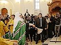 [Встреча с Православием / Богослужение] 3 / 16 ноября 2013 г. Суббота 21-й седмицы по Пятидесятнице. Сретенский монастырь. Великая вечерня, утреня. Хор Сретенского монастыря. (MP3 файл. Продолжительность 2:30:20 мин. Размер 108.3 Mb) English Edition [News] The head of the Orthodox Church of Alexandria was given a solemn reception, at which Sergei Petlyakov, Consul General of the Russian Federation in Alexandria, was also present.  [News] A ceremony marked the return of the 173 items that were stolen from Orthodox and Maronite Christian churches in the Turkish Cypriot northern part Cyprus.  [News] Serbian Orthodox Church celebrates today the feast dedicated to Cosmas and Damian, popularly known as “Vraci” or “Vracevi”. These saints are considered patrons of the medical profession.  [News] On November 13, 2013, Bishop Theophylact of Pyatigorsk and Cherkessk served a Divine Liturgy in the Church of St. Elijah of St. Alexander Nevsky Monastery in the village of Nizhny Arkhyz. This is the oldest active church in Russia, originating from the 10th century.  [News] In Arkhangelsk the regional phase of the All-Russian review of Orthodox communities in state penitentiaries, "Not by number, but by humility" has been resumed.  [News] The Patriarchate of Georgia sees a danger in the initiative of the Georgian NGO, "Identity", that is actively defending rights of sexual minorities, of founding an orphanage for homeless children in Tbilisi. Српска верзиjа [Вести] 14. новембра Његово Блаженство Патријарх Александријски и целе Африке Теодор II је на позив капетана 1. ранга Александра Потапова дошао на адмиралски брод руске Тихоокеанске флоте – ракетну крстарицу гарде „Варјаг“, која се тренутно налази у близини египатске обале  [Вести] Руска Државна дума је после другог и трећег разматрања прихватила нацрт закона о забрани рекламе абортуса и надрилекарства.  [Вести] Председник Синодалног информативног одељења В.Р.Легојда је подржао законодавни предлог посланика из Самарске области о уношењу измена у члан 35 Федералног закона «О обавезном медицинском осигурању у Руској Федерацији», којим се предвиђа законодавна забрана финансирања абортуса о трошку буџетских средстава, изузев вршења абортуса због медицинских показатеља.  [Вести] У Великој сали Руског дома 22. новембра са почетком у 19:30 сати одржаће се хуманитарни концерт за изградњу Храма Светог Николе и Парохијског дома у Реснику. Патријарх српски, господин Иринеј дао је свој благослов за ову изградњу.  [Вести] Претпоставке које шире различита издања, укључујући и инострана, о евентуалним датумима или местима оваквог састанка позивајући се на речи председника ОСЦВ митрополита Илариона су измишљотине новинара,» изјавио је архимандрит Филарет.