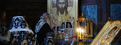 [Встреча с Православием / Богослужение] 20 февраля / 5 марта 2014 г. Среда 1-й седмицы Великого поста. Сретенский монастырь. Полунощница, утреня, 1-й, 3-й, 6-й, 9-й часы, изобразительны, вечерня с Литугией Преждеосвященных Даров. Хор Сретенской Духовной Семинарии. (MP3 файл. Продолжительность 5:35:54 мин. Размер 241.9 Mb)  [Встреча с Православием / Жизнь Церкви] Священник Сергий Бегиян Нужно попытаться понять дух установлений Типикона, мотивы святых отцов, которые его составляли. Тогда станет понятно, что есть некие главные моменты.  [Интернет-журнал / Культура] Иногда у меня появляется такое ощущение, что Россия для Запада слишком велика. И ведь она, несмотря на все свои грехи, начинает вставать и выпрямляться – слава Тебе, Господи!  [Поместные Православные Церкви / Сербская / Публикации] Воспоминания игумении Печ Патриаршая о святителе Николае (Велимировиче), сербском Патриархе Павле и многострадальной косовской земле.  [Встреча с Православием / Жизнь Церкви] Протоиерей Артемий Владимиров Мы попросили отца Артемия Владимирова сказать слово ободрения вступающим в подвиг Великого поста.  [Встреча с Православием / Православная библиотека] По средам и пятницам (и некоторым праздникам) в течение всей Четыредесятницы совершается литургия Преждеосвященных Даров. Мониторинг СМИ Петрос Панайотопулос В завершение периода подготовительных недель к Святому и Великому посту, т.е. в период Триоди Постной, Церковь устанавливает, чтобы чтение Евангелия в последнее воскресенье перед постом (Мф. 6, 14-21) содержало набор простых и практических предложений об истинном значении поста и воздержания. Действительно, мы видим в этом евангельском чтении Господа, учащего Своих слушателей – а с ними и благочестивых во все времена верующих – тому, как должны вести себя люди в период поста.  Священник Василий Куценко В богослужебной жизни Православной Церкви Великий пост — совершенно особое время. Во-первых, потому что великопостный путь ведет каждого верующего к встрече Праздника праздников и Торжества из торжеств — Пасхи Христовой. Во-вторых, в древней Церкви именно Великий пост был дорогой вхождения в Церковь через принятие Таинства Крещения.  Сергей Глазьев прокомментировал возможность введения экономических санкций США против России в связи с событиями на Украине и поделился своим видением украинского вопроса. English Edition [News] Separatist Islamic extremists suspected.  [News] On March 5, 2014, the Wednesday of the first week of Lent, His Holiness Patriarch Kirill of Moscow and All Russia, after a morning service at the Church of Christ the Saviour, left for Istanbul (Constantinople) for a meeting of heads and representatives of the Local Orthodox Churches.  [Saints. Asceties of Piety. Church Holy Days ] St. Ignatius (Brianchaninov), Archimandrite Lazar (Abashidze) Often the mind does not remember a sin committed, or may hardly recognize it as a sin. However, the soul remembers—it feels hell inside, it languishes and suffers, and the whole person is filled with a kind of melancholy, anxiety, and despondency.  [Homilies and Spiritual Instruction] Let us keep the Fast not only by refraining from food, but by becoming strangers to all the bodily passions; that we who are enslaved to the tyranny of the flesh may become worthy to partake of the Lamb, the Son of God, slain of His own will for the sake of the world, and spiritually may celebrate the feast of the Savior’s Resurrection from the dead. So shall we be raised on high in the glory of the virtues, and through our righteous actions we shall give joy to the Lord who loves mankind (Aposticha at Vespers for Wednesday). Српска верзиjа [Вести] Током Великог поста у руској војној бази Еребуни у Републици Јерменији планирано је освештавање више од 500 војних објеката и око 15 хиљада јединица наоружања и војне опреме, саопштава прес-служба Јужног војног округа.  [Вести] На позив Његове Св