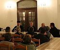 Мч. Домнина Сщмч. Алексия пресвитера (1918). Сщмч. Михаила пресвитера (1920). Сщмчч. Александра, Георгия Люблинской (IX), Псково-Покровской ![]() [Встреча с Православием / Проповеди] Тот покров, который простерла Божия Матерь над главами молящихся в Константинопольском храме тысячу лет назад, имеет много общего с тем покровом, который простирает над главою кающегося за каждой исповедью священник или епископ. (MP3 файл. Продолжительность 11:06 мин. Размер 10.7 Mb) ![]() [Встреча с Православием / Богослужение] 1 / 14 октября 2017 г. Суббота 19-й седмицы по Пятидесятнице. Покров Пресвятой Владычицы нашей Богородицы и Приснодевы Марии. Сретенский монастырь. Божественная литургия. Хор Сретенской духовной семинарии. (MP3 файл. Продолжительность 1:11:43 мин. Размер 68.9 Mb) ![]() [Встреча с Православием / Жизнь Церкви] Окончание рассказа об экспедиции Сретенского монастыря, организованной этим летом в рамках проекта, занимающегося возрождением деревянных храмов Севера. Мониторинг СМИ![]() Сентябрь и октябрь украшены православными праздниками, словно россыпью алмазной, будто жемчужным сияющим ожерельем. ![]() Как общаться с полностью обездвиженным ребенком? Этим вопросом задаются многие родители, которые годами не могут найти способ взаимодействия с детьми, больными церебральным параличом. English Edition![]() [Saints. Asceties of Piety. Church Holy Days ] And thus, we celebrate the Protection of the Most Holy Theotokos Virgin, remembering her most glorious appearance in the Blachernae church, seen by Sts. Andrew and Epiphanios. We celebrate, giving thanks to our Protectress for her great mercy shown to the Christian race, and we earnestly pray to her that she would now and always prayerfully protect us who seek her protection. Српска верзиjа![]() [Вести] У четвртак, 28. септембра 2017 године, у сали црквено – парохијског дома у Обреновцу, архимандрит др Никодим (Богосављевић), одржао је предавање на тему “Троструки венац Светог цара Николаја II”. У уводном делу, о. Никодим је говорио о царовању, мучеништву и христоликом страдању цара Николаја. ![]() [Вести] Дана 13. октобра 2017. године Његово Преосвештенство Епископ ваљевски Господин Милутин боравио је у ваљевској касарни, која носи име по великом српском војводи Живојину Мишићу, где је присутвовао свечаности поводом прославе Дана војне јединице 2. центра за обуку. ![]() [Вести] На празник Св. Киријака Отшелника – Михољдан, Његово Преосвештенство Епископ милешевски г. Атанасије је био у радној посети храмовима Васкрсења Христовог и Светог Великомученика кнеза Лазара у Прибоју. У пратњи Епископа био је протођакон Никола Перковић. ![]() [Вести] Током свог боравка у Холандији од 5. до 8. октобра због посете притвореницима у Хагу, Епископ Атанасије је служио Литургије у Парохијима у Амстердаму и Ротердаму, као и редовни годишњи помен на холандском гробљу Гердерен код Апелдорна где је сахрањено 29 српских војника из Првог светског рата. ![]() [Вести] Свеправославно Друштво "Преподобни Јустин Ћелијски и Врањски" Епархије врањске 07.10.2017. године, организовало је Симпосион међународног карактера "Монаштво у Српској Православној Цркви данас". ![]() [Друштво] Узимањем паметног телефона свако пристаје на чињеницу да „неко” испрати његове претраге на интернету, сазна коју музику и литературу воли, какве новчане трансакције обавља, где је био… ![]() [Вести] Уз саслужење часног свештенства и богољубивог монаштва епархије далматинске, Његово Преосвештенство епископ далматински Г. Никодим служио је данас (08.10.2017.) своју прву Свету Архијерејску Лутургију. У Саб