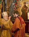 Сегодня мы слышали Святое Евангелие, в котором рассказывается, как Господь в одной из синагог, так повествует святой апостол Лука, учил. Синагога – это греческое слово, которое обозначает сонмище, собор, собрание, потому что συν (син) – совместный, αγω (аго) – вести, совместно ведут молитвы. Синагоги возникли тогда, когда был разрушен храм, и в плену Вавилонском возникли первые сонмища, чтобы люди не дома только молились, но и могли молиться совместно, собираясь в определенные места, дома молитвы. (MP3 файл. Продолжительность 13:08 мин. Размер 6.4 Mb)