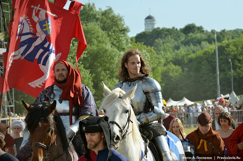 Конные рыцари покидают арену. Фото: Антон Поспелов / Православие.Ru
