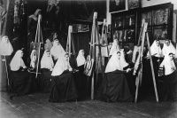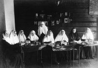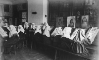 14 / 27 июня Дивеево, Четвертый удел Божией Матери на земле, чествует своих святых. Перед революцией 1917 года в обители проживало около 1700 монахинь и послушниц. Лишь одна из них – схимонахиня Маргарита (или, как называли ее, «баба Фрося») – дожила до открытия монастыря и возвращения мощей преподобного Серафима. Однако, и дореволюционный быт и иноческие послушания остались запечатленными в фотографиях, часть из которых вошла в личный фотоальбом игумении Александры (Траковской; †1942), последней настоятельницы Дивеевского монастыря. По счастью, этот альбом сохранился, и мы с радостью представляем его уникальные кадры.