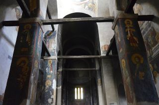 До наших дней сохранились два слоя фресок, сильно пострадавших во время турецкого владычества, потому что храм превращали в мечеть. Несколько фрагментов относятся к более ранней росписи начала XIII века, а большая часть - ко времени короля Милутина и выполнена между 1307 и 1313 гг.