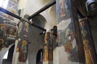 До наших дней сохранились два слоя фресок, сильно пострадавших во время турецкого владычества, потому что храм превращали в мечеть. Несколько фрагментов относятся к более ранней росписи начала XIII века, а большая часть - ко времени короля Милутина и выполнена между 1307 и 1313 гг.