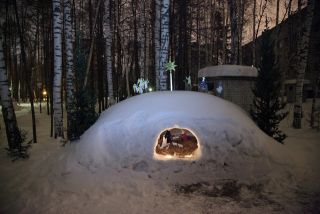 Под снежной шапкой вертепа. Фото: pravoslavie.tomsk.ru