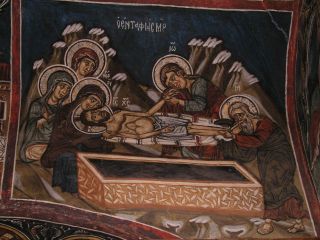 Holy and Great Saturday Saturday. The back of a double-sided Hodigitria Icon with the image of the Mother of God. The Museum of Archaeology in Kastoria, Greece.
