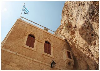 Незабываемое ощущение от греческих служб у гроба Господня и у Голгофы. Свечи рядком горят в длинных латунных подсвечниках с песком. Один человек стоял у Голгофы, обхватив голову руками, в глубокой скорби, ища утешения в молитве. Запомнилось мне, как искренне он молился, сердцем, со слезами. На горе искушения в монастыре живет всего один греческий монах. Высоко смотрит он с горы на весь мир. В его глазах сострадание к людям и любовь.