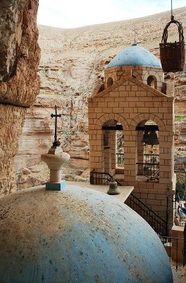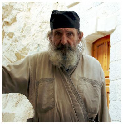 Незабываемое ощущение от греческих служб у гроба Господня и у Голгофы. Свечи рядком горят в длинных латунных подсвечниках с песком. Один человек стоял у Голгофы, обхватив голову руками, в глубокой скорби, ища утешения в молитве. Запомнилось мне, как искренне он молился, сердцем, со слезами. На горе искушения в монастыре живет всего один греческий монах. Высоко смотрит он с горы на весь мир. В его глазах сострадание к людям и любовь.