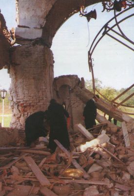 Обратите внимание, как сияет крест в небе на полуразваленом храме,. Несмотря на очень удручающее впечатления от развалин, появляется при виде этого сияющего креста, увереннсть и надежда, что Господь востановит разрушеный храм и он будет сиять таким же благолепием, как и этот крест.