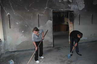 Косово и Метохия: поруганные святыни.  Призрен. Во дворе Призренской семинарии после уборки. Осень 2011 г.
