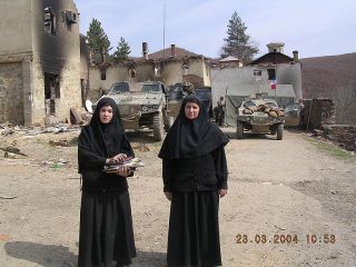Косово и Метохия: поруганные святыни.  Монастырь Девич. Разгромлен и сожжен толпой албанцев во время погрома 17-19 марта 2004 г.