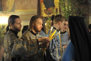Всенощное бдение накануне совершили наместник обители архимандрит Тихон с братией монастыря в священном сане.