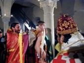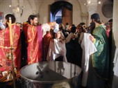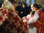 Таинство крещения совершалось в притворе собора Вознесения Господня и ему по древней традиции предшествовала литургия оглашенных. После таинства крещения была совершена литургия верных закончившаяся общим причастием святых Христовых таин. В совершении таинства участвовали священнослужители Сербской, Иерусалимской, Элладской, Грузинской и Русской Православных Церквей.