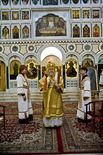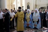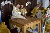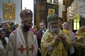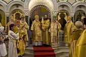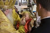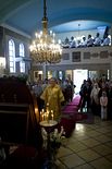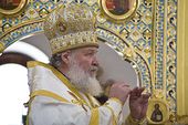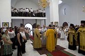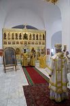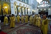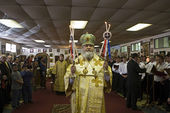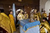 После совершения чина освящения храма во имя Казанской иконы Божией Матери в нем была совершена первая Божественная литургия, которую возглавил митрополит Кирилл в сослужении архиепископов Марка и Павла, епископа Евтихия, архимандрита Тихона и других клириков Русской Православной Церкви. За богослужением пел хор московского Сретенского ставропигиального монастыря.