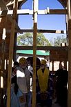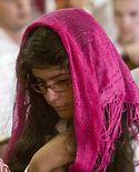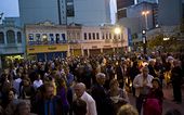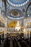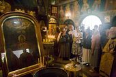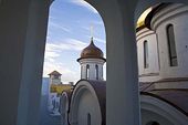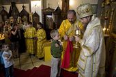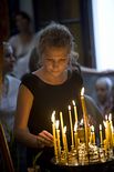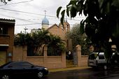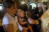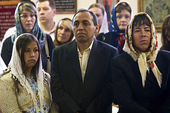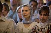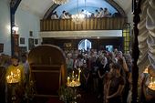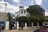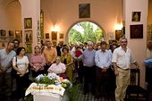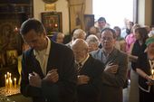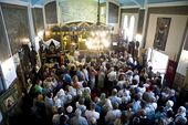 Небольшой храм в русском стиле, построенный после Второй мировой войны русскими эмигрантами, не смог вместить всех молящихся. Десятки верующих стояли и молились во дворе храма. Многие пришли с детьми, в том числе с грудными.