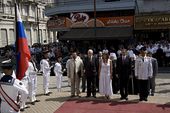 После Божественной литургии был совершен молебен у расположенного на улице Бульнез памятника равноапостольному князю Владимиру. Перед началом молебна представители делегации Русской Православной Церкви, а также Посол Российской Федерации в Аргентине Ю.П. Корчагин, председатель Комитета по международным делам Государственной Думы Федерального Собрания Российской Федерации К.И. Косачев и директор Федеральной службы России по военно-техническому сотрудничеству М.А. Дмитриев возложили цветы к подножию памятника. Молебен возглавил первоиерарх Русской Зарубежной Церкви митрополит Восточно-Американский и Нью-Йоркский Иларион. Буэнос-Айрес, Аргентина, 3 ноября 2008 г.3 ноября 2008 года в здании юридического факультета Аргентинского государственного университета, располагающего одним из самых крупных в Буэнос-Айресе залов для проведения концертов и форумов, состоялась торжественная церемония открытия выставок «Православная Русь» и «Современная Россия». По окончании мероприятия в актовом зале прошел концерт хора московского Сретенского монастыря. Предваряя концертную программу, Посол Российской Федерации в Аргентине Ю.П. Корчагин рассказал об уникальном проекте – «Днях России в странах Латинской Америки», об истории Сретенской обители, о молодых христианах, составляющий ее прославленный хор. На протяжении двух часов сотни людей внимали пению знаменитого хора в переполненном зале, многие из них – стоя. Среди многочисленных слушателей были первый заместитель министра иностранных дел и культов Аргентины Витторио Таччетти, послы ряда государств, представители аргентинской общественности, клирики и прихожане приходов Аргентинских епархий Московского Патриархата и Русской Зарубежной Церкви, включая и тех из них, которые в настоящее время не находятся в общении с Архиерейским Синодом Русской Православной Церкви за границей. Буэнос-Айрес, Аргентина, 4 ноября 2008 г.4 ноября 2008 года, в день празднования Казанской иконы Божией Матери, в Благовещенском кафедральном соборе Московского Патриархата в Буэнос-Айресе было совершено торжественное архиерейское богослужение. В храм была доставлена чудотворная икона Пресвятой Богородицы «Державная». Богослужение совершили митрополит Аргентинский и Южно-Американский Платон, митрополит Восточно-Американский и Нью-Йоркский Иларион, архиепископ Буэнос-Айресский и всей Аргентины Силуан (Антиохийский Патриархат), архиепископ Хустский и Виноградовский Марк, архиепископ Рязанский и Касимовский Павел, епископ Домодедовский Евтихий, епископ Каракасский Иоанн. Архипастырям сослужили члены делегации в священном сане, клирики Антиохийского Патриархата, Аргентинской епархии Московского Патриархата, а также Русской Зарубежной Церкви. В алтаре молился и причащался митрополит Буэнос-Айресский и Южно-Американский Тарасий (Константинопольский Патриархат). На богослужении присутствовал посол РФ в Аргентине Ю.П. Корчагин. За литургией пел хор московского Сретенского монастыря. Аргентина, Мар-дель-Плата, 5 ноября 2008 г.5 ноября 2008 года хор московского Сретенского монастыря дал концерт в здании театра Колон г. Мар-дель-Плата.. Аргентина, Мар-дель-Плата, 6 ноября 2008 г.Молебен у строящегося храма, посвященного памяти святых царственных мучеников, в окрестностях известного курортного центра Арг