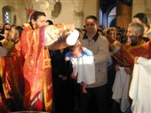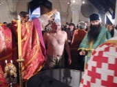 Крещается раб Божий во имя Отца аминь. И Сына аминь. И Святаго Духа , аминь