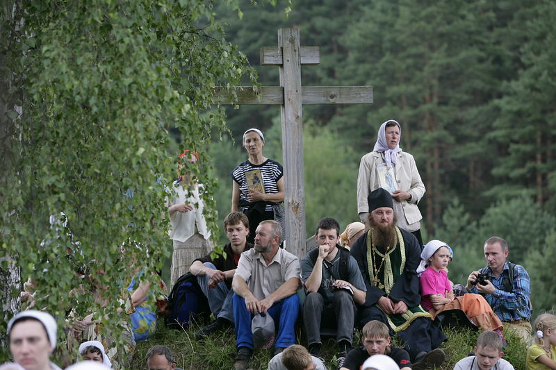 Иринарховский крестный ход 2007 г.Молебен у разрушенного храма в Троице-на-Бору. Поклонный крест