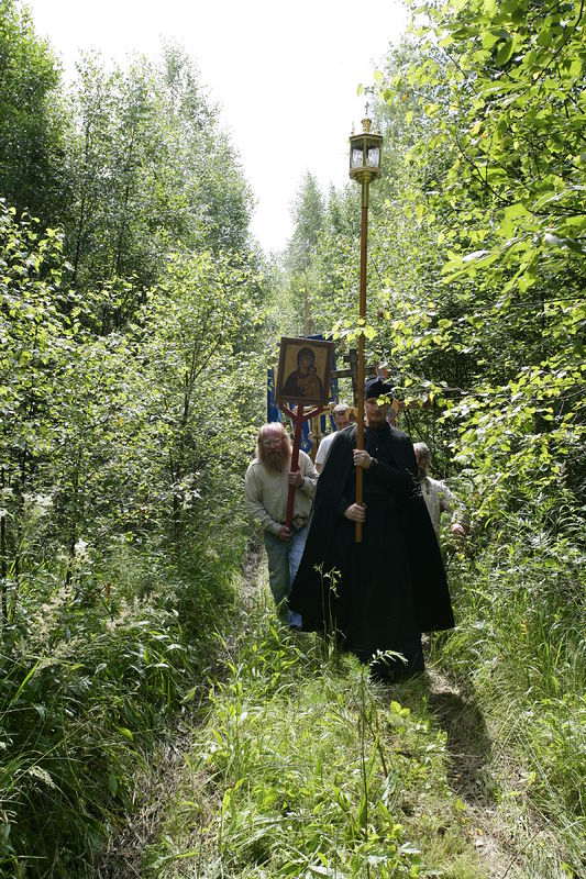 Иринарховский крестный ход 2007 г.В лесу. По тропинке рядом могут идти лишь два человека
